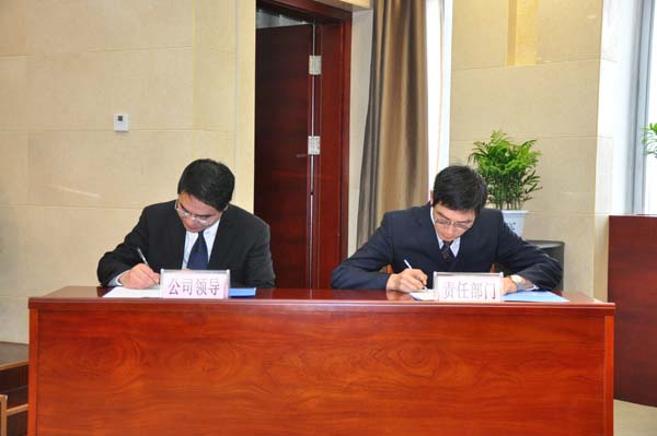 会上,戴川秋总经理代表公司与365bet体育投注网_365bet开户网_365英国上市公司部门代表签订了《2012年安全责任书》和《2012年经营管理目标责任书》。宋正中副书记与代表签订《2012年党风廉政建设目标责任书》。