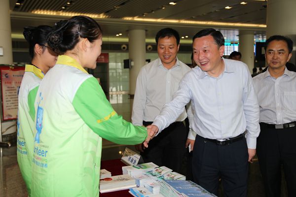 徐书记与常州365bet体育投注网_365bet开户网_365英国上市公司志愿者亲切握手,询问了志愿服务工作情况,并实地视察了新航站楼候机区、旅客到达区、贵宾室等区域。徐书记充分肯定了常州365bet体育投注网_365bet开户网_365英国上市公司花博会志愿服务工作。