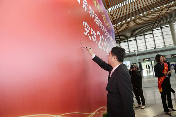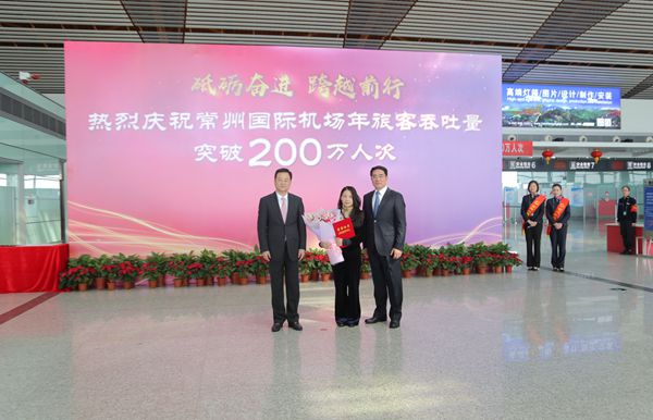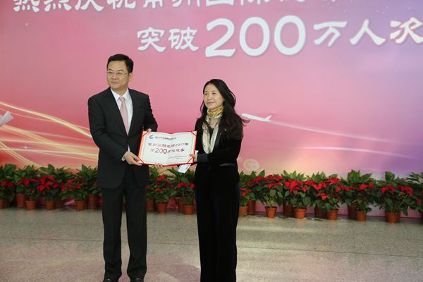 10月23日上午,从常州365bet体育投注网_365bet开户网_365英国上市公司出发,准备搭乘东航2983航班前往西安的唐女士,成为常州365bet体育投注网_365bet开户网_365英国上市公司2017年第200万名旅客,这标志着常州365bet体育投注网_365bet开户网_365英国上市公司年旅客吞吐量首次突破200万人次大关。这既是常州民航发展的一座重要里程碑,也预示着常州365bet体育投注网_365bet开户网_365英国上市公司将踏上一个新的起点,正式开启迈向华东地区重要国际365bet体育投注网_365bet开户网_365英国上市公司建设的全新征程。常州市人民政府副市长李林在现场向第200万名幸运旅客颁发纪念证书并送上祝福。