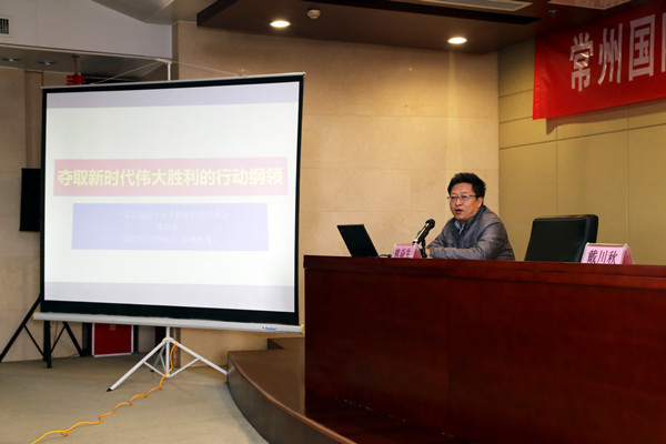 12月1日上午,常州国际365bet体育投注网_365bet开户网_365英国上市公司召开学习宣传贯彻党的十九大精神专题报告会,邀请常州工学院党委委员、马克思主义学院院长、市委十九大宣讲团成员熊焱生教授进行专题辅导。集团党委书记、董事长戴川秋主持报告会并作动员部署。集团领导班子、中层管理人员以及全体党员共计110余人参加了会议。