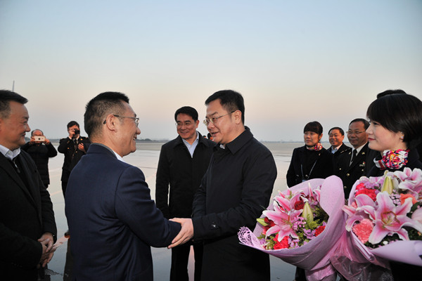 副市长李林欢迎澳航高层并赠送鲜花