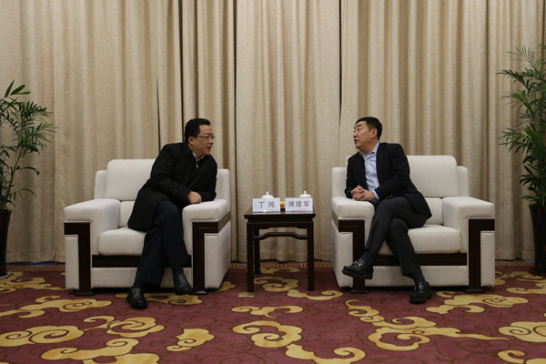 市长丁纯与东航江苏公司总经理侯建军进行友好会谈