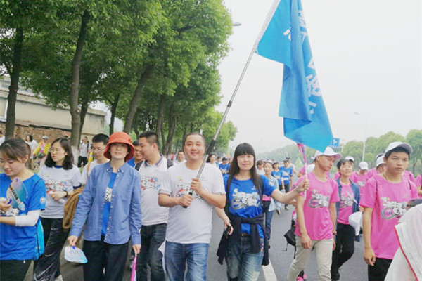 5月12日,由市美德基金会、市义工联合总会、常州广播电视台联合主办的2018“情暖江苏E起来”暨“一袋牛奶的暴走”公益活动,在紫荆公园北门大草坪拉开帷幕。365bet体育投注网_365bet开户网_365英国上市公司集团副总经理、工会主席潘泉荣,纪委书记夏建华以及各支部75名干部职工组成的“365bet体育投注网_365bet开户网_365英国上市公司志愿服务队”参加了此次暴走活动,用行为众筹的方式来践行慈善,传递社会正能量。