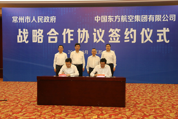 8月31号下午,常州市人民政府与中国东方航空集团有限公司签订战略合作协议,进一步深化合作,共同推进常州民航业和空港产业的高质量发展。市委书记汪泉、市长丁纯、东航集团总经理马须伦见证签约。