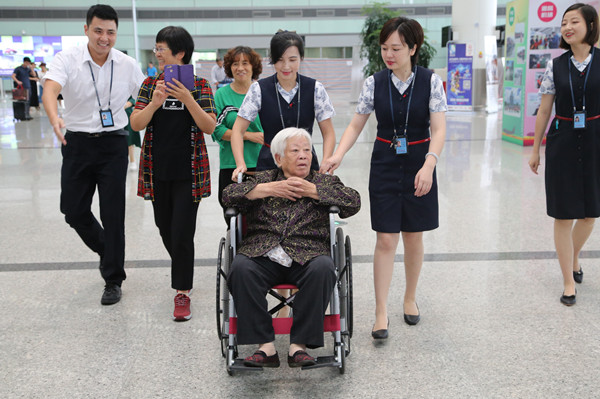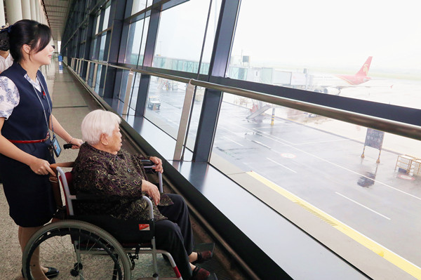 9月14日下午,“丹玉”班组问询台接到了宗女士的求助电话,电话里宗女士表示自己的母亲想近距离看看飞机。原来,宗女士的母亲季老太从没有坐过飞机,老人一直想看看真正的飞机是什么样的。宗女士曾想帮老人买张机票,但因季老太年事已高且身患重疾,无法乘机。“丹玉”班组了解情况后,积极商讨确认方案,主动回电宗女士,帮季老太圆梦。
