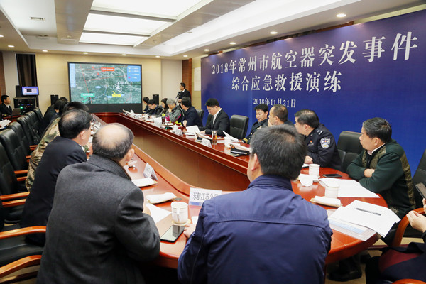 2018年11月21日下午,常州市航空器突发事件综合应急救援演练,在常州国际365bet体育投注网_365bet开户网_365英国上市公司举行。副市长李林参加救援演练,并担任总指挥,民航江苏安全监督管理局进行督导,常州市应急办、市交通运输局、市卫计委、市安监局、市国资委、市消防支队等六家单位参加观摩。