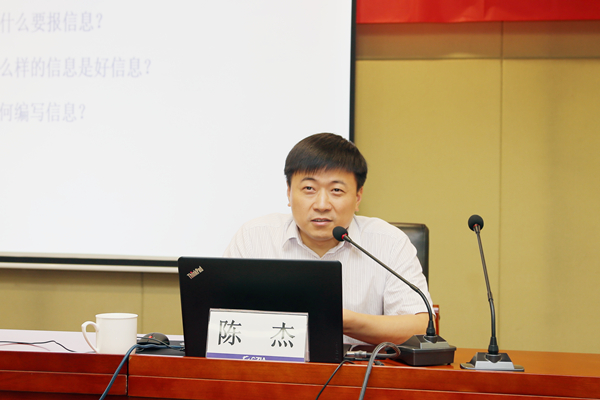 专题培训主要围绕政务信息用稿风格、选题角度、编写角度三方面展开。陈杰处长结合自身工作实践,系统讲解了政务信息报送思路、挖掘信息途径、整理信息方法等有关知识,提出采写政务信息时要围绕领导关心的重点、社会关注的热点和工作遇到的难点,把握政策风、热点风、特色风,积极报送选题精准、语言精炼、结构清晰、标题引人的政务信息。
