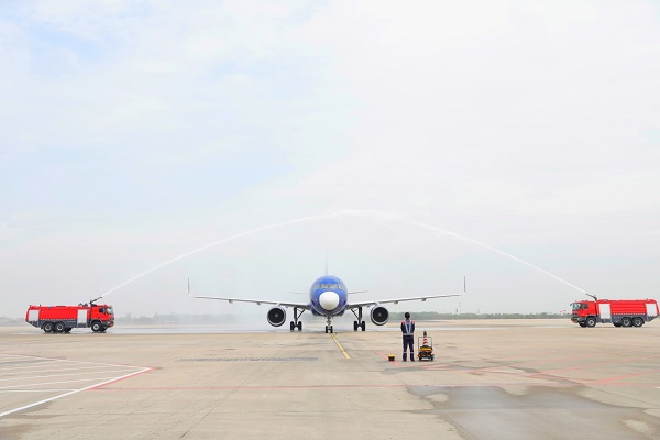4月20日11时许,春秋航空9C6737航班平稳降落在常州国际365bet体育投注网_365bet开户网_365英国上市公司,标志着常州-安康对口帮扶航线正式开通。陕西省人大常委会副主任、安康市委书记郭青率党政代表团乘机抵常,市委副书记、市长陈金虎出席首航仪式。
