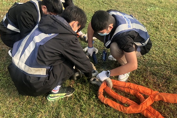 随着实战演练总指挥一声令下,残损航空器搬移预案正式启动。应急保卫部和医务人员率先出动救援,模拟控制火情和救治伤员。塔台总指挥作出进一步指示,现场机务人员随即对航空器外表面做初步检查,通过对飞机机身、所有起落架、飞机燃油系统等主要部件和飞机姿态进行初步检查、记录,确定最终搬移方案。此次方案为倒拉牵引,首先使用牵引绳连接航空器主起落架将航空器拖离草地至硬道面,再用牵引杆将其向前拖拉至指定地点。机务人员动作娴熟,将牵引绳、钢索准备好后与牵引车连接最终完成航空器搬移工作。