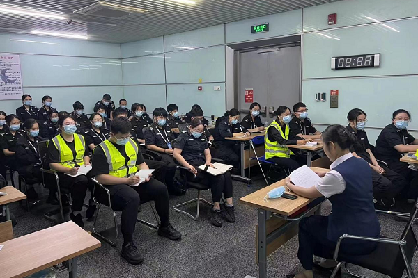 部门经理束敏对“二十大”保障工作进行详细部署,一是要求全员要充分认清当前面临的严峻形势,提高政治站位。二是在重保期间,要加强涉恐涉稳人员查控,严格依据等级响应要求,强化安全检查措施。要严格落实好旅客人身、行李及货物的安全检查工作,确保民航安全保卫工作平稳有序。三是各班组要认真梳理应急预案,进一步提升安检人员的反应速度、员工应急处置能力和协同配合意识。四是各级管理人员要严格执行24小时值班制度,履行好值班值守职责。五是掌握安检设备运行状况,杜绝设备带病上岗,确保安检工作平稳运行。六是持续按要求开展常态化疫情防控工作,按要求做好员工个人防护、定期核酸检测、岗位消杀、进出候机楼健康码查验等工作。