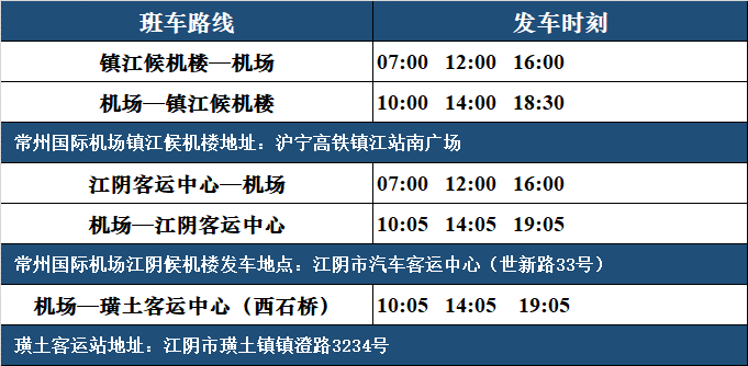 为满足旅客出行需求,本周起恢复镇江、江阴旅客班车,每天往返各3班。镇江班线由镇江候机楼始发,首班发车时间为07:00,末班发车时间为16:00;回程常州365bet体育投注网_365bet开户网_365英国上市公司首班发车时间为10:00,末班发车时间为18:30。江阴班线由江阴候机楼始发,首班发车时间为07:00,末班发车时间为16:00;回程常州365bet体育投注网_365bet开户网_365英国上市公司首班发车时间为10:05,末班发车时间为19:05,经停璜土客运中心(西石桥)。