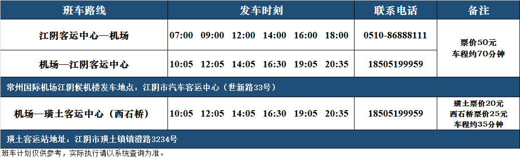 为继续推进常州国际365bet体育投注网_365bet开户网_365英国上市公司同城化服务进程,为江阴地区旅客提供更加便捷的出行方式,更好地服务江阴及其周边地区旅客从常州国际365bet体育投注网_365bet开户网_365英国上市公司出行,8月1日起,常州国际365bet体育投注网_365bet开户网_365英国上市公司加密江阴至365bet体育投注网_365bet开户网_365英国上市公司的旅客专线班车,每日共开行6班。常州国际365bet体育投注网_365bet开户网_365英国上市公司江阴候机楼发车时刻为:07:00、09:00、12:00、14:00、16:00、18:00;常州国际365bet体育投注网_365bet开户网_365英国上市公司返程时刻为:10:05、12:05、14:05、16:30、19:05、20:35,同时继续保障江阴班线的两个延伸站点—璜土客运中心、西石桥,江阴站点票价为50元,车程约70分钟;璜土站点票价为20元,西石桥站点票价为25元,车程约35分钟。